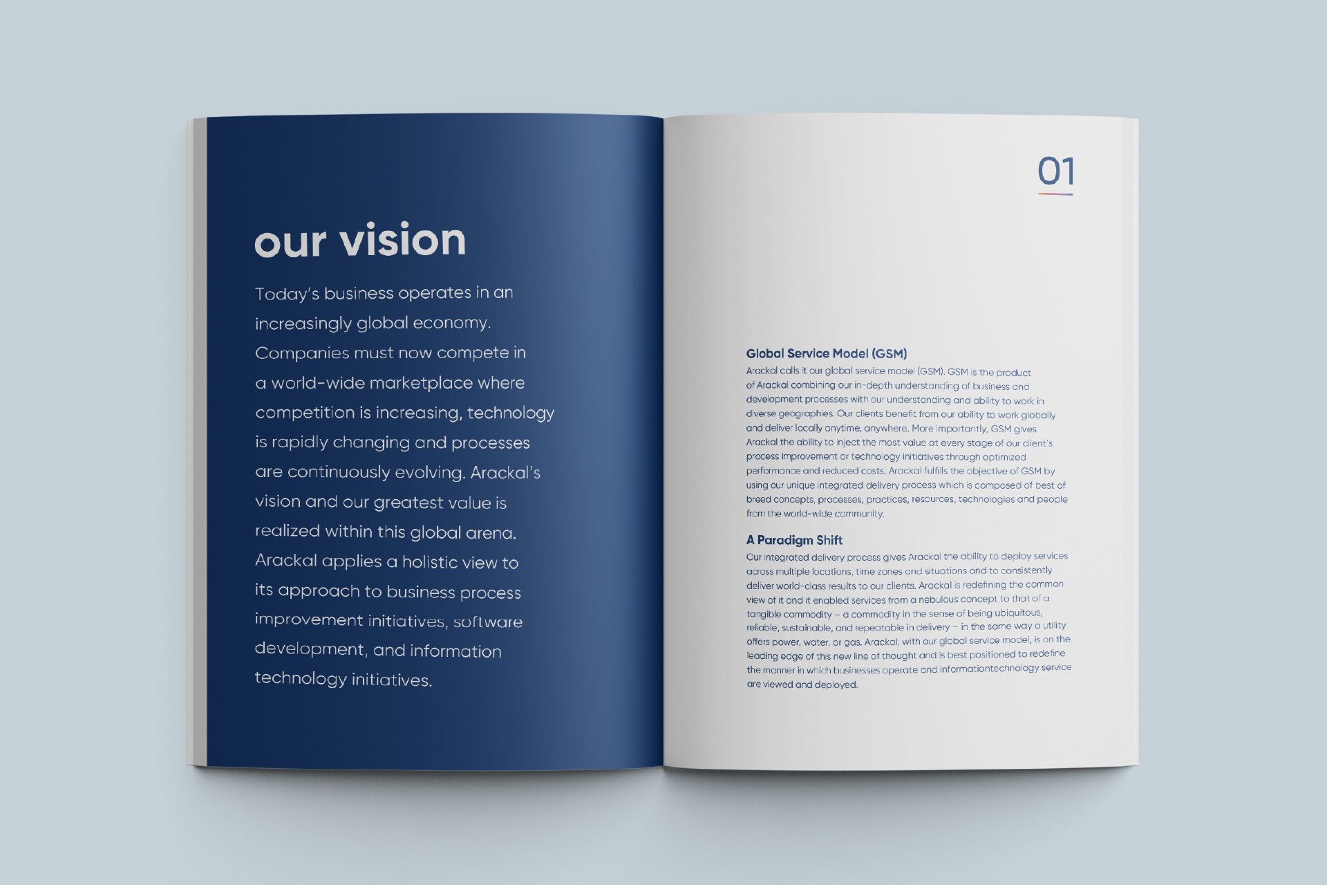 Arackal provides global digital development solutions. Offering clients complete digital integration and migration to ease the data management process. Arackal’s global resources brings the time to develop applications into high gear by accelerating time and cutting expenditures. E-Learning is a division of Arackal designated to online education technologies. The challenge was rebrand the company and develop a strong brand identity, one that would increase brand awareness across the competitive IT brandscape and establish Arackal as a leader in the market sector. The company also required stronger sales support tools to boost their ongoing efforts to establish new business. The new company rebrand helped the company gain considerable recognition and leveraged their brand image to favourable acceptance by new business prospects. The new website and promotional tools have helped the company leviate their position in the competitive brandscape.