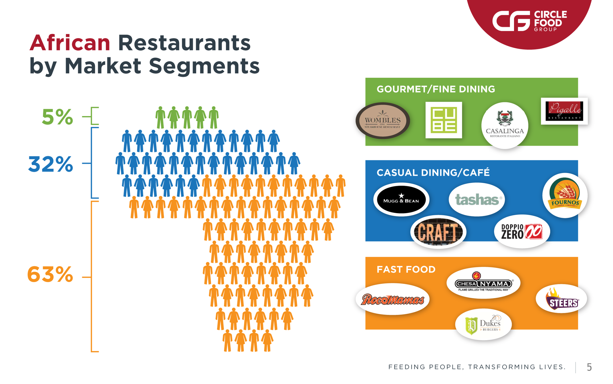 Circle Food Group is a major player in the fast-growing franchise food business across Africa. The company is focused on creating entrepreneurial opportunities for prospective business owners and also operates well regarded food brands. We were called upon to develop the brand identity for the corporation its headquarters and various branded applications across their promotional vehicles. The client selected a modern approach with a bold color palette to help establish a clear and distinctive market presence. The new corporate identity has been conceived to organize and harmonize the company’s franchise divisions. The company has achieved an excellent reputation with its investors and is steadily gaining recognition within the food franchise market sector.