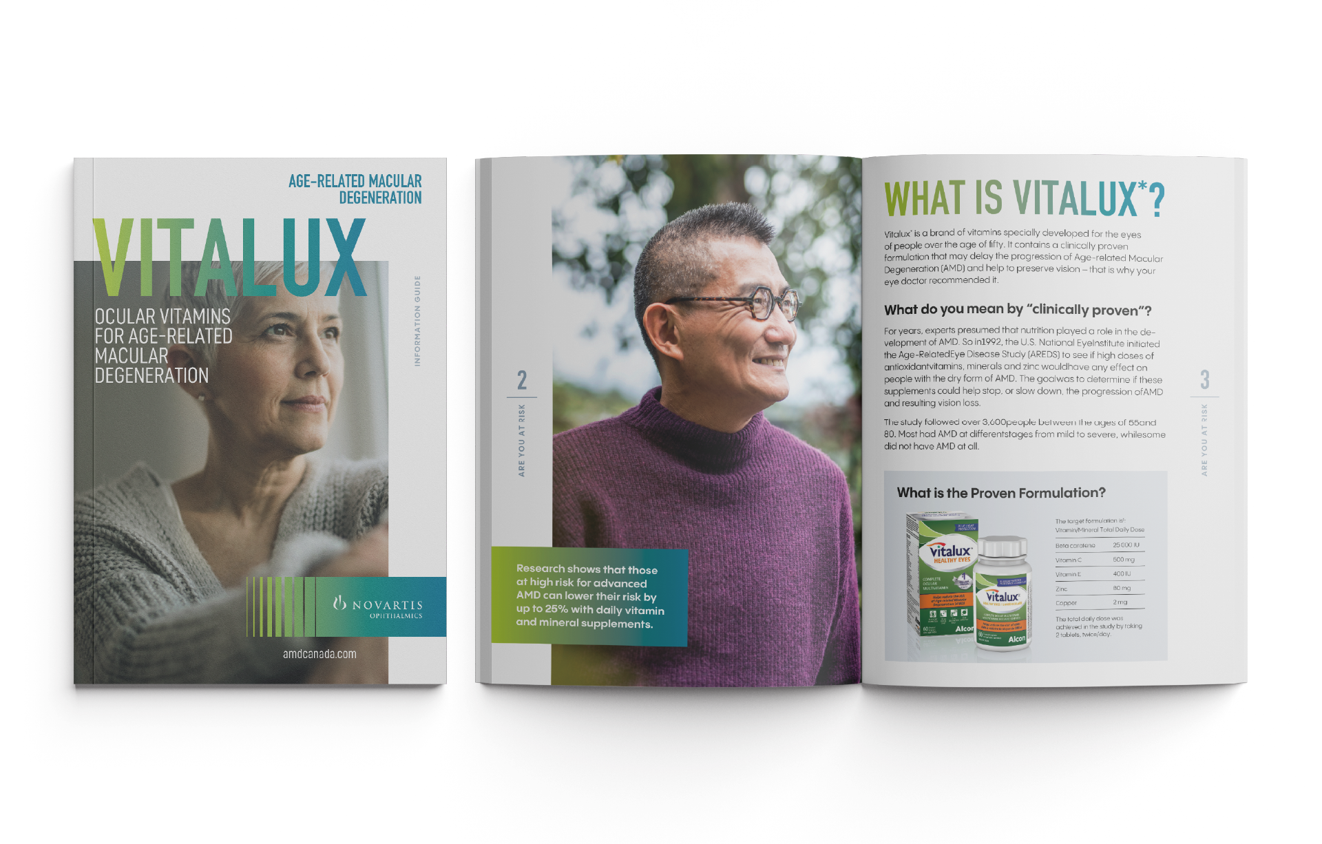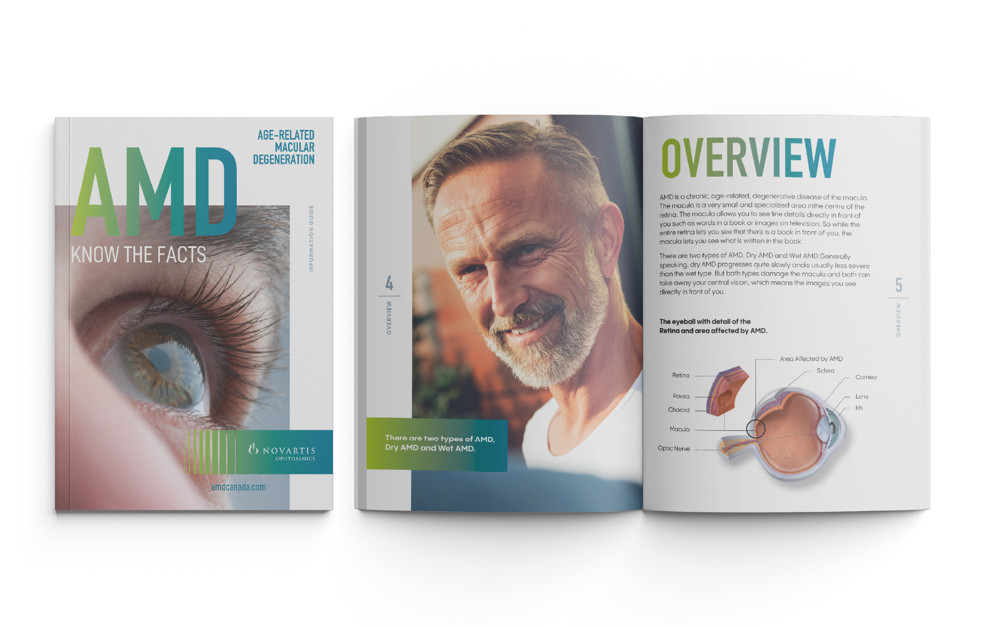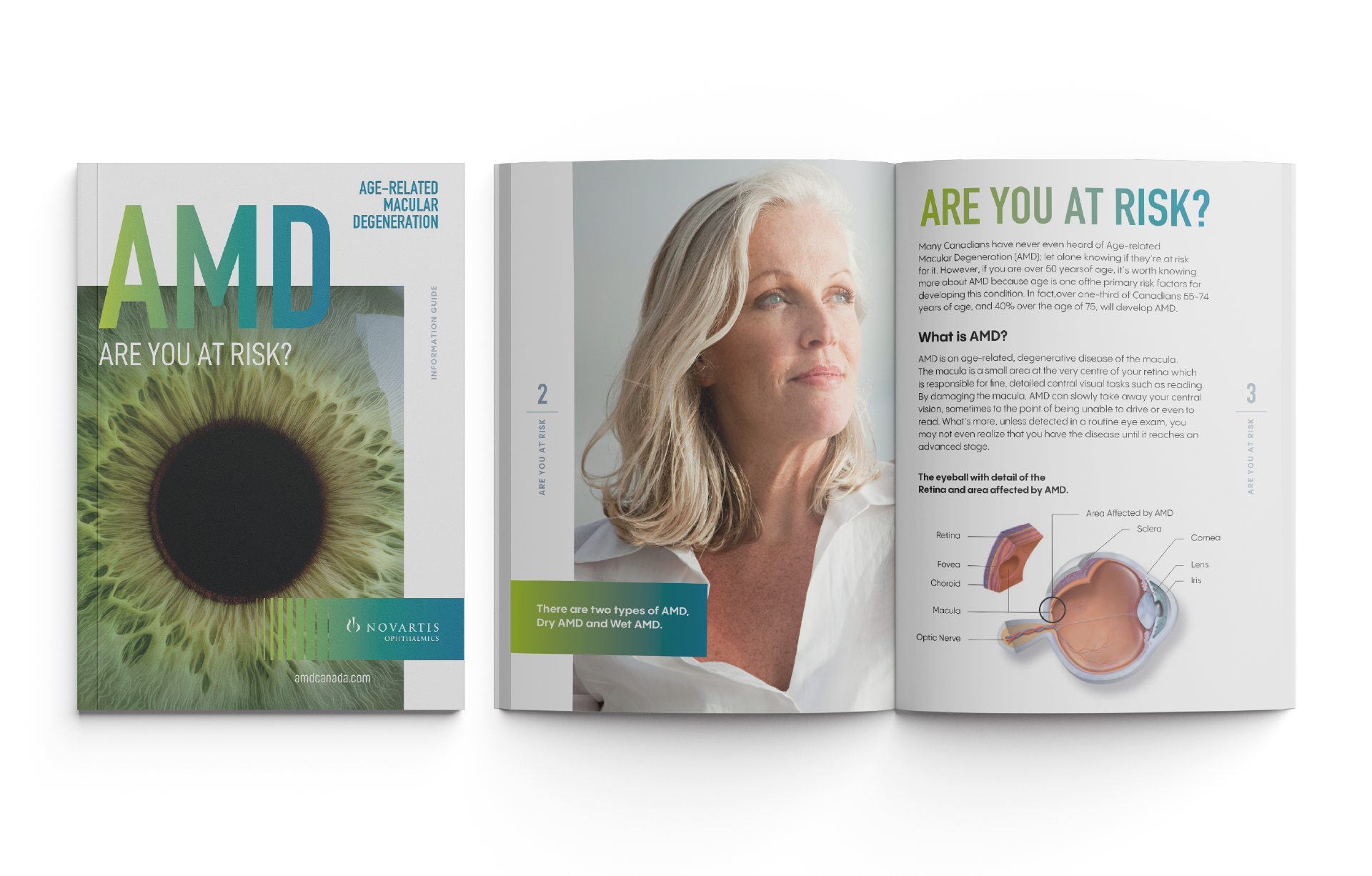To shed light on Age-Related Macular Degeneration (AMD), we designed an engaging suite of publications paired with a sleek, integrated brochure display. Featured in doctors’ offices across North America, the materials quickly became a trusted educational resource—sparking conversations, increasing awareness, and empowering patients to take proactive steps in protecting their vision.