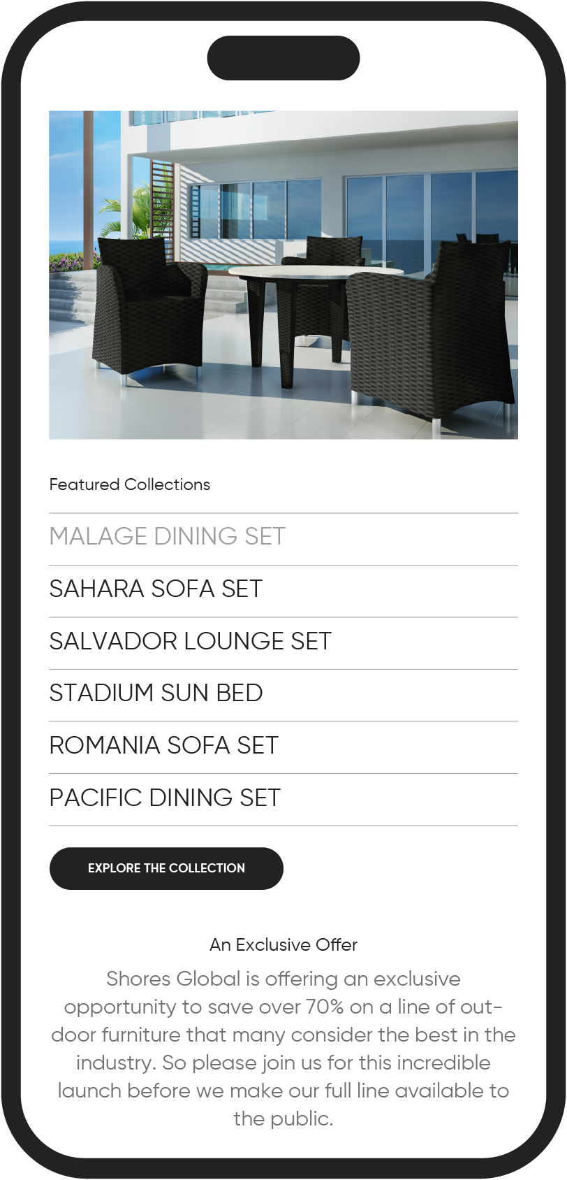 Results: The results exceeded expectations — the entire inventory sold out within a single season. The campaign attracted both local and national buyers, boosted brand visibility, and turned a clearance initiative into a showcase of Shores Global’s design excellence and market reach.